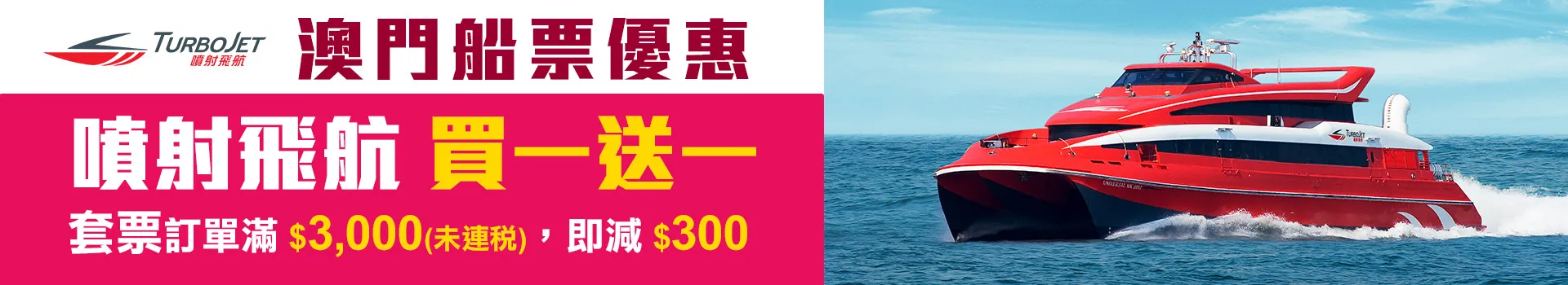 3. 於優惠期內購買金光飛航 港澳碼頭前往澳門氹仔官網公佈正價船票一張,將獲贈免費標準艙程翌日起計七(7)日內的回程航班船票一張。