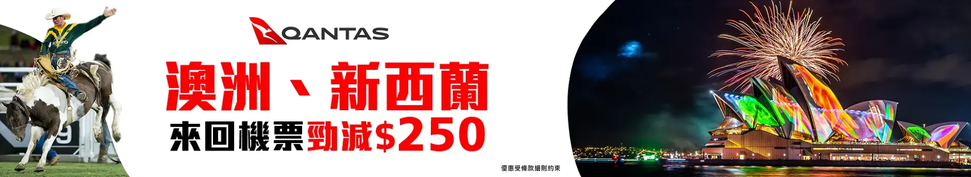 訂購澳洲航空往來香港澳洲、新西蘭來回機票^,單一訂單【無門檻】立減$250!