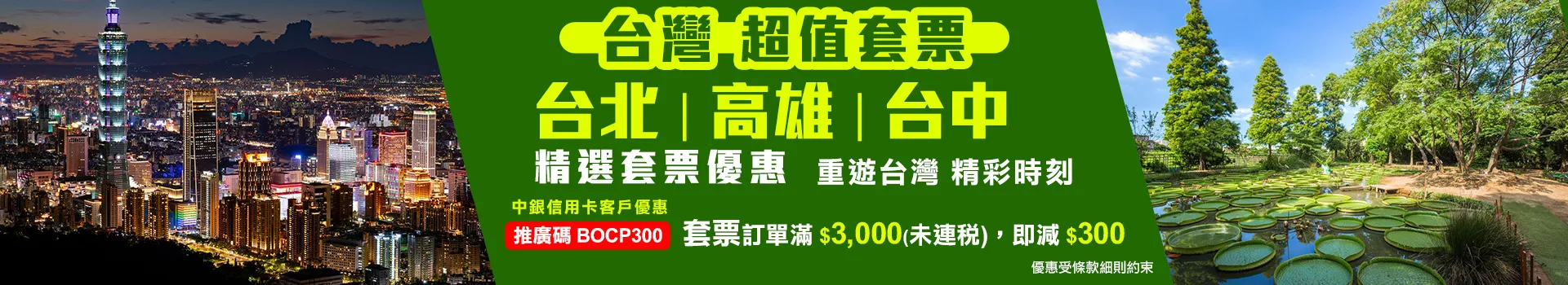 預訂自由行套票,訂單滿$3,000,即減$300