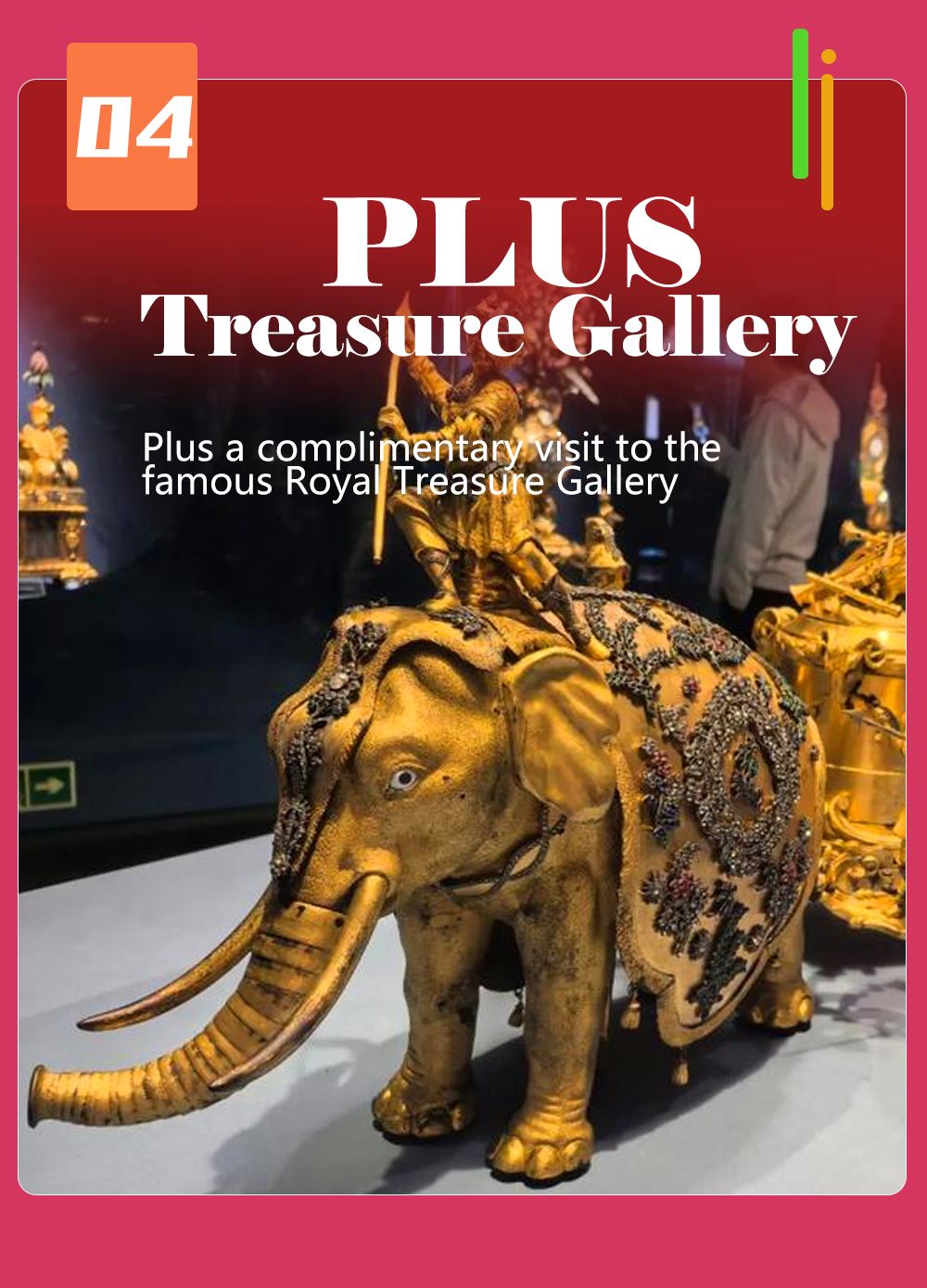 - 探索專屬的皇家珍寶館,收藏著精美的皇家文物。