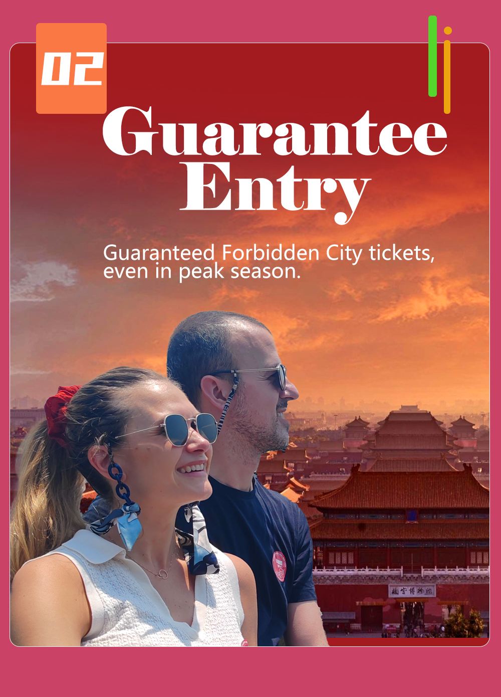 天安門廣場作為國家重要活動的場地,或會偶爾暫時關閉。如遇此情況,我們將退還差價。