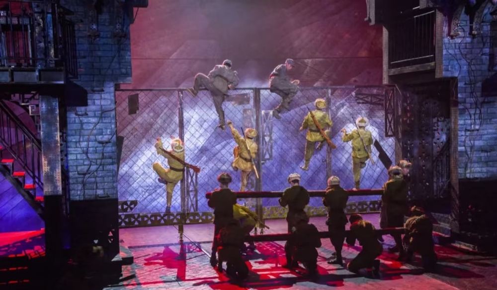 ▲ 《12:12》所有技術方案均圍繞「讓觀眾身臨其境」:360°影像呈現、全息音響系統、全方位舞台設計讓觀眾成為演出的一部分;燈光的交替變幻帶領觀眾穿梭於緊迫的槍林彈雨之中………。據總導演李捍忠介紹,《12·12》在全國較早創立了「影畫」表現形式,融合戲劇、電影、舞蹈、多媒體機械運動等當代藝術於一體,在講述歷史的同時,帶給觀眾前所未有的視聽體驗。