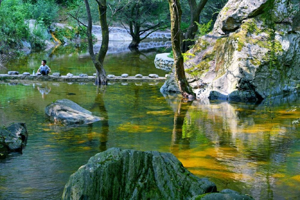 ▲ 【遊玩路線】 2.石門峽景區(山間的河道)纜車入口處乘坐景區交通車--石門峽(接駁車單程10/人,來回15/人)--亦可步行至石門·半山度假酒店--九龍飛瀑--金蟾湖天仙瀑布--天涯--情人谷--石板河