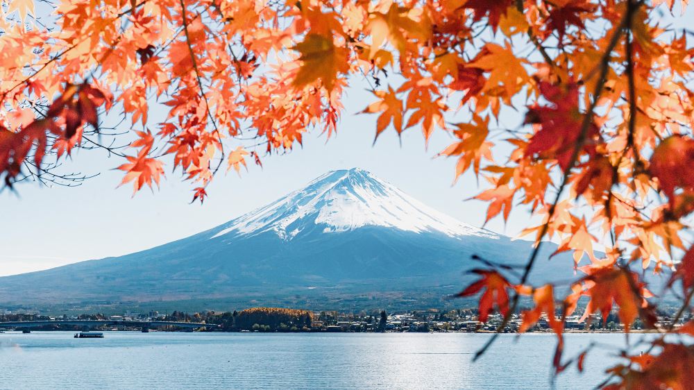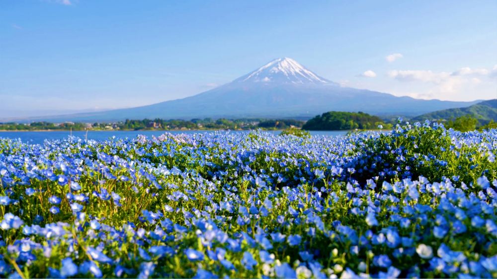 ▲ 河口湖·大石公園, 花園就在湖邊,遠處就是富士山, 春天有芝櫻、夏天有薰衣草,秋冬也有金黃落葉或雪景倒影, 推薦慢慢沿著湖邊散步,小路隨手一拍都是日雜感大片。