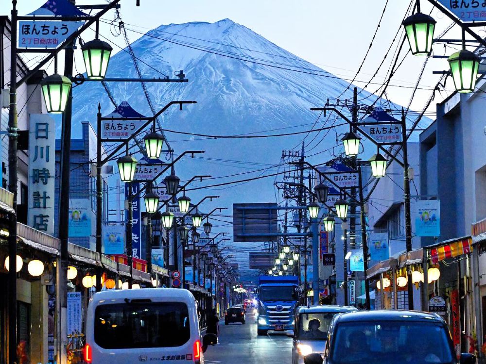 ▲ 富士山天梯小鎮,筆直坡道引向山巔,是攝影師私藏的完美取景線,街景自成一幅寧靜詩畫。