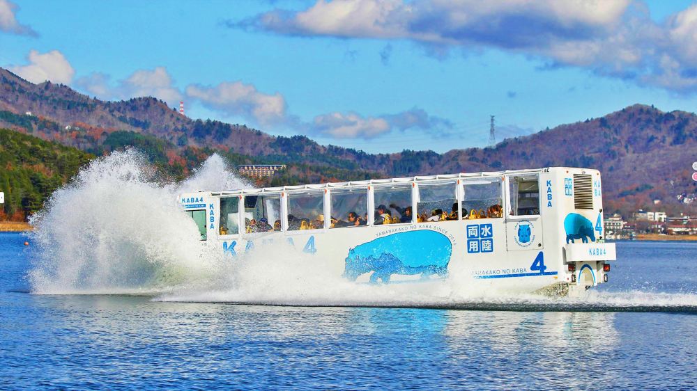 - 乘坐KABA水陸兩用車,湖陸暢遊趣味旅程,山中湖遊覽船「天鵝湖」,三種玩法隨心選