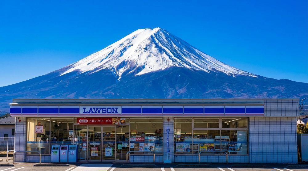 喺便利店門前定格「富士山同招牌」同框瞬間,影低經典打卡大片交通