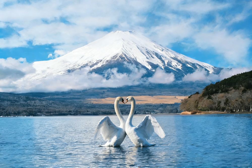 漫步山中湖,餵養優雅天鵝,近距離感受人與自然的溫柔互動。返回指定地點