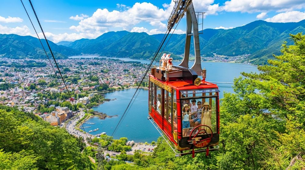 選擇河口湖遊覽船 天晴或纜車,從湖面或高空俯瞰富士山與河口湖的壯麗景觀午餐