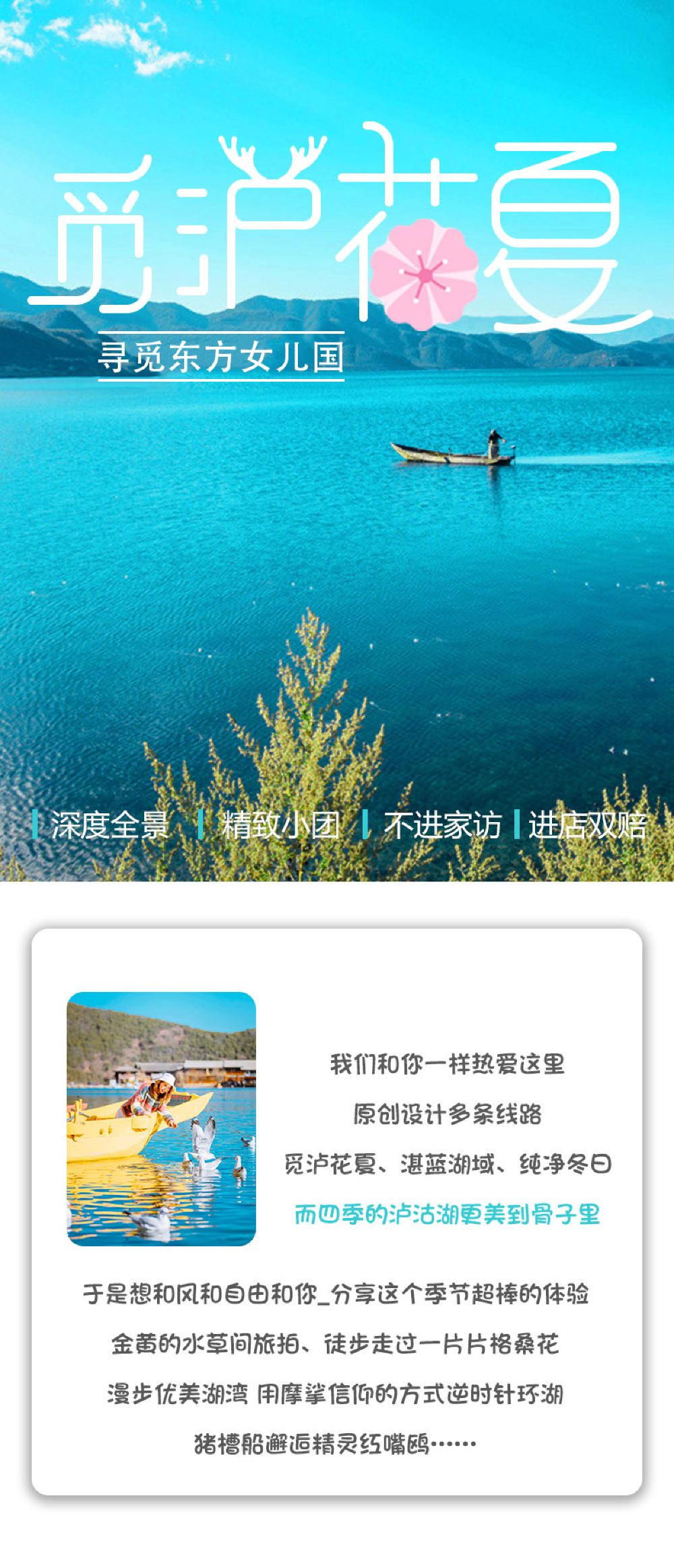 麗江瀘沽湖純玩一日遊【360°環湖◆豬槽船遊湖◆商務小團】
