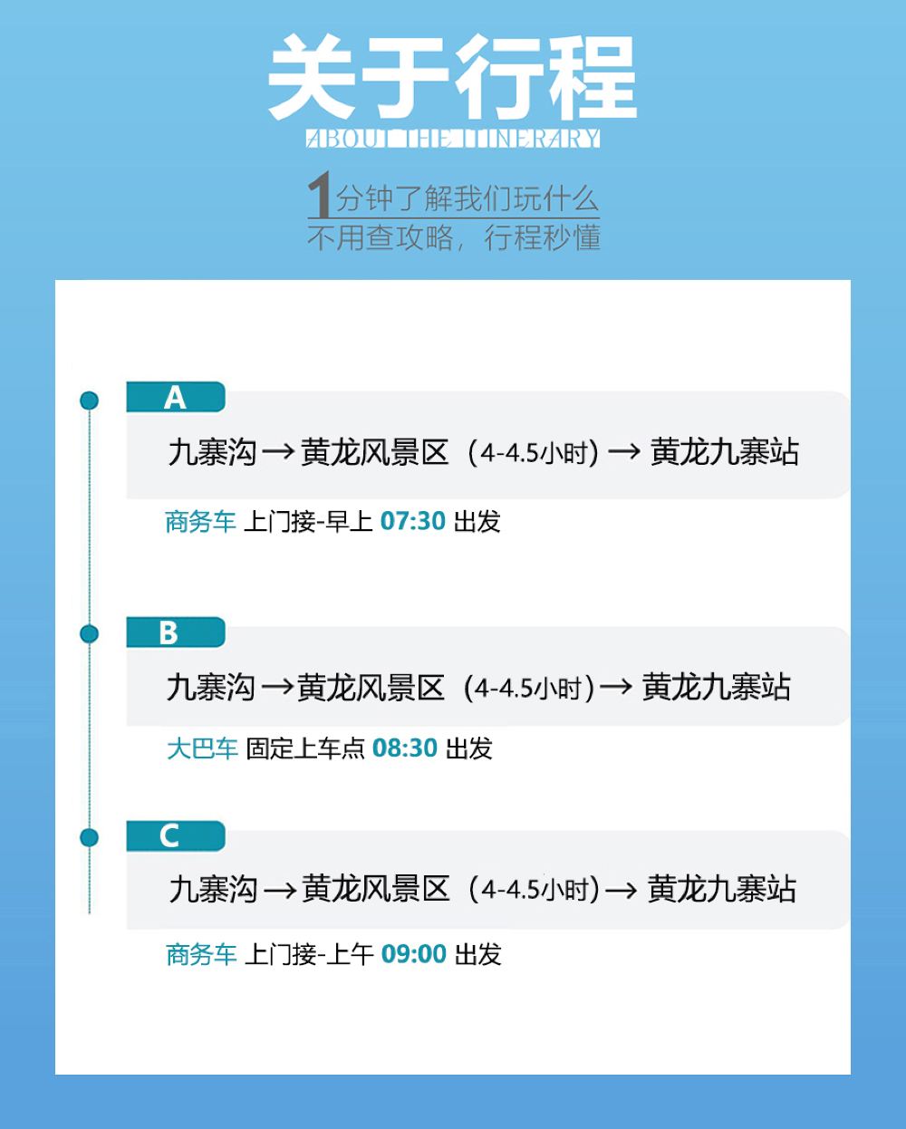 3.商務車在景區停留4小時,從黃龍景區出發時間司機通知。