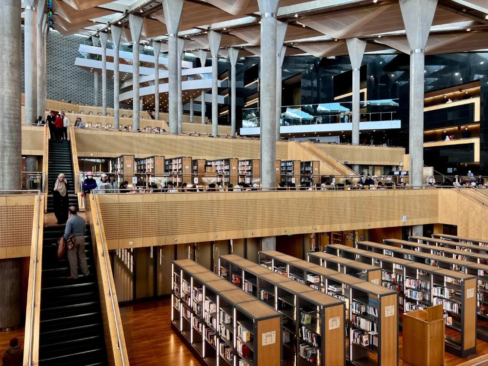 ▲ 亞歷山大圖書館是現代重建的文化地標,以紀念古代世界七大奇蹟之一的古亞歷山大圖書館。其建築呈傾斜圓形,玻璃幕牆如知識之窗,藏書超800萬冊,含大量古籍複刻本。