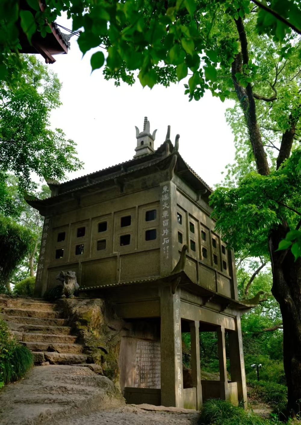 在講解員的帶領下,漫步於印社園林。這裡不僅是百年社團,更是孤山園林的精華所在。參觀柏堂、竹閣,感受文人雅集之趣;仰觀摩崖石刻,尋找隱藏在石壁上的名家題字;登華嚴經塔,俯瞰西湖全景,遠眺蘇白二堤。了解西泠印社「保存金石,研究印學」的百年使命,聽一聽吳昌碩、沙孟海等社長的傳奇故事。