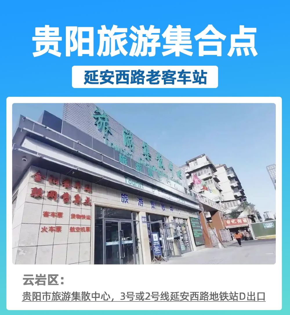 節假日/旺季集合返回時間:15:00左右,淡季14:30左右,具體時間以導遊通知為準 行程、景點遊覽順序、遊覽時間僅提供參考標準,具體視天氣、景區通知、遊客實際遊覽情況、導遊安排而定。 溫馨提示:因道路情況及貴陽市區容易堵車,回程時間不確定,為避免耽誤您的行程,請勿安排當日返程的飛機/火車,如發現誤機/車,我社概不負責,請知曉!