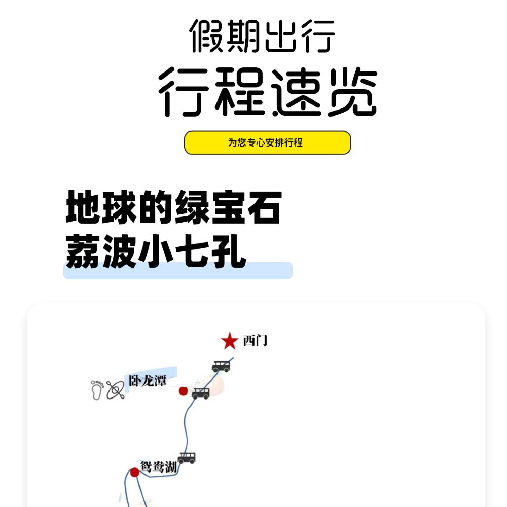 ▲ 由於貴州景區普遍較大,各家庭遊覽速度不一,為了不影響大家的遊覽體驗,導遊會在車上進行統一講解,到景區後自由活動,根據導遊通知按時集合返回。頁面時間僅供參考,具體出行時間安排以導遊通知為準。(導遊在景區內不帶隊講解,敬請知悉)