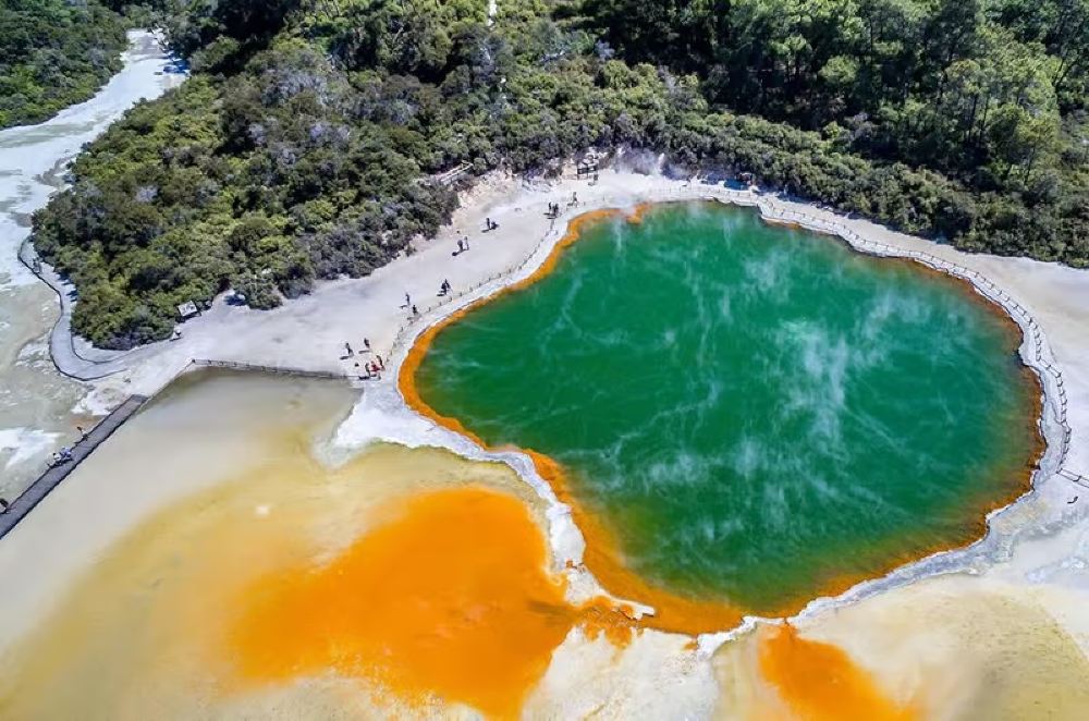 參加全程導覽的徒步之旅,探索這座超現實地熱公園,目睹蒸汽的火山口、沸騰的泥漿池以及香檳湖和魔鬼浴池等午餐
