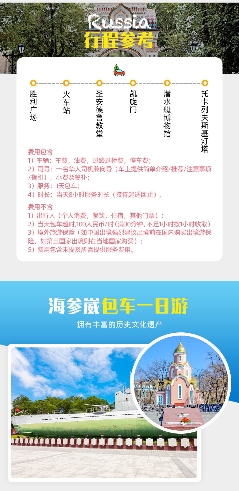 俄羅斯海參崴託卡列夫斯基燈塔+凱旋門+C-56博物館一日遊
