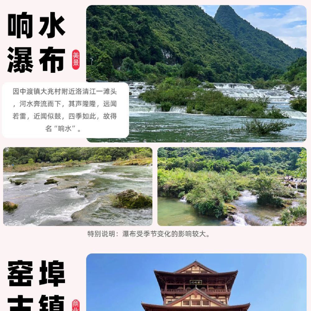 約12:50 遊玩中渡古鎮+響水瀑布;