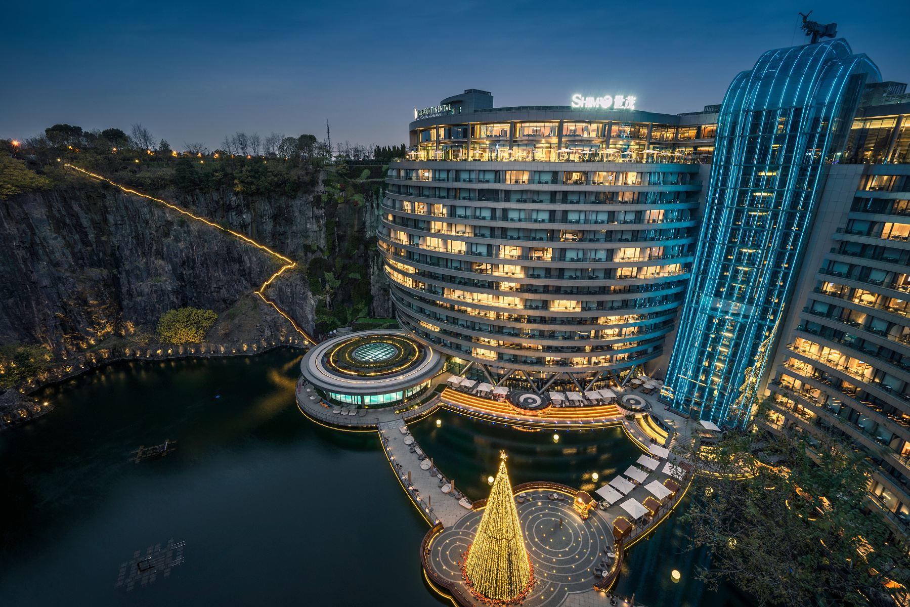 上海世茂精靈之城主題樂園依天馬山深坑而建,融合特有的崖壁的自然資源,結合室內室外相結合的概念,打造出獨特的深坑內酒店奇觀的主題遊樂園。