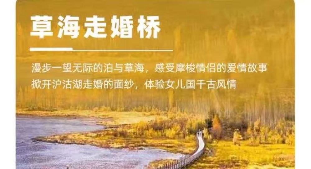 於指定地點接載09:00 寧蒗 於指定地點接載 頁面的行程時間與景點為本次獨立包團的行程推薦,(大落水村——呂家灣沙灘——花海碼頭(看水性楊花)——草海走婚橋——女神灣——四川情人灘——瀘源涯——小落水觀景台——里格——雲南情人灘——大落水(結束行程)