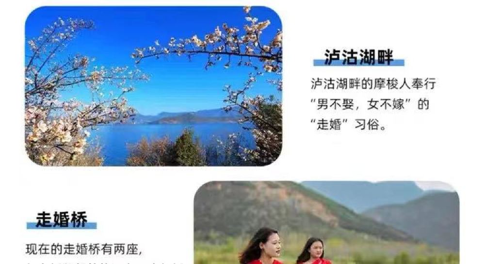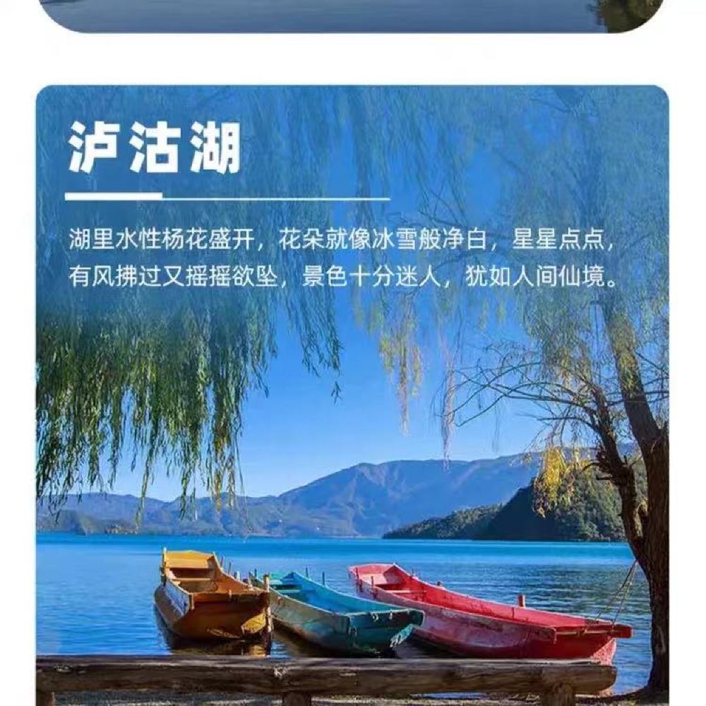 頁面的行程時間與景點為本次獨立包團的行程推薦,(大落水村——呂家灣沙灘——花海碼頭(看水性楊花)——草海走婚橋——女神灣——四川情人灘——瀘源涯——小落水觀景台——里格——雲南情人灘——大落水(結束行程)早餐