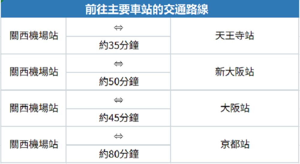 從關西機場站出發,約 35 分鐘 抵達天王寺,約 50 分鐘 抵達新大坂,約 80 分鐘 抵達京都。超便捷的交通服務。