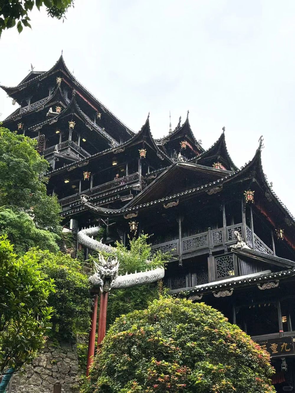 ▲ 張家界七十二奇樓位於永定區武陵山大道,是健力士世界紀錄中的吊腳樓形態建築,高109.9米。其主樓造型奇特,與天門洞形成「雙洞互視」。景區內業態豐富,還有精彩的燈光演繹秀,是張家界的文化地標和夜經濟新引擎。