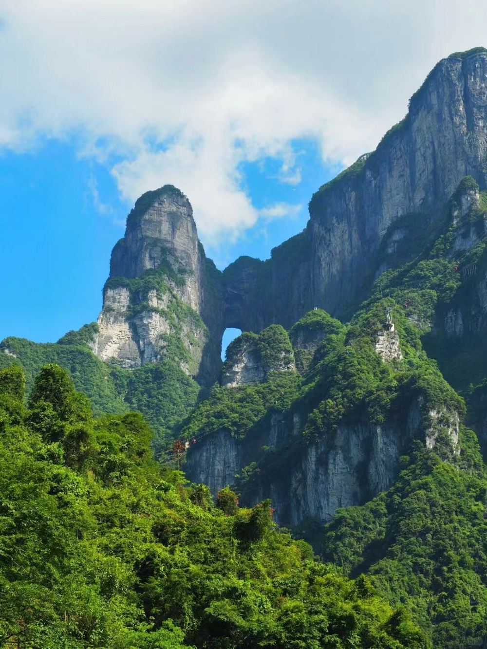 ▲ 天門山是張家界永定區海拔最高的山,主峰海拔1518.6米。它是國家AAAAA級旅遊景區。因自然奇觀天門洞而得名,洞內有鬼谷洞、上天梯等自然景觀與天門山寺、天門書院等人文景觀。