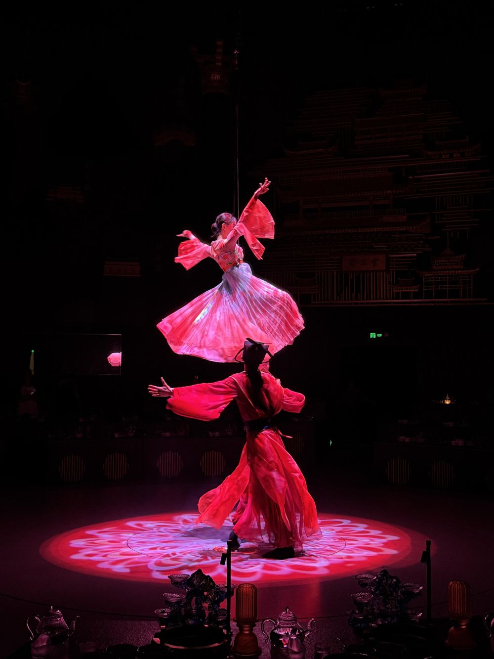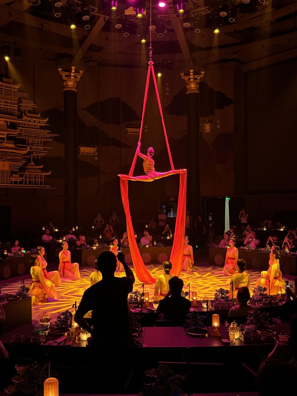 - 宮廷風環境:3000㎡空間,12米穹頂搭配雙巨幕,環形劇院結構,座位按「六藝」排列,古色古香。