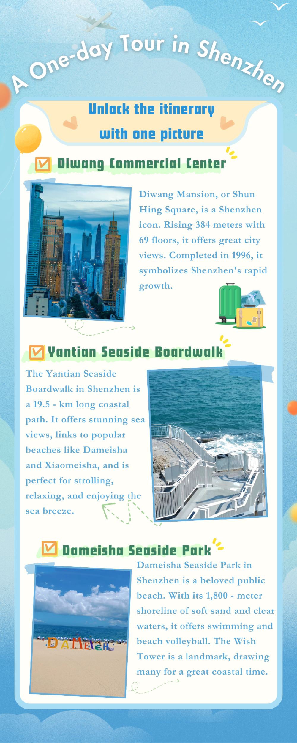 深圳一日遊【地王大廈+鹽田海濱棧道+大梅沙海濱公園】英文導遊