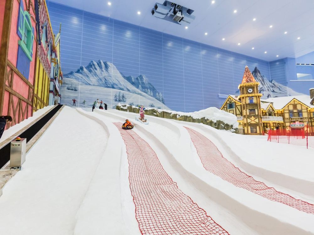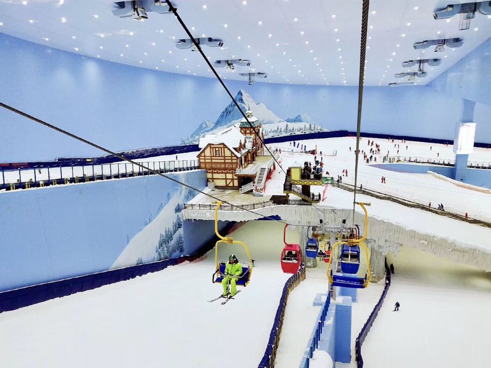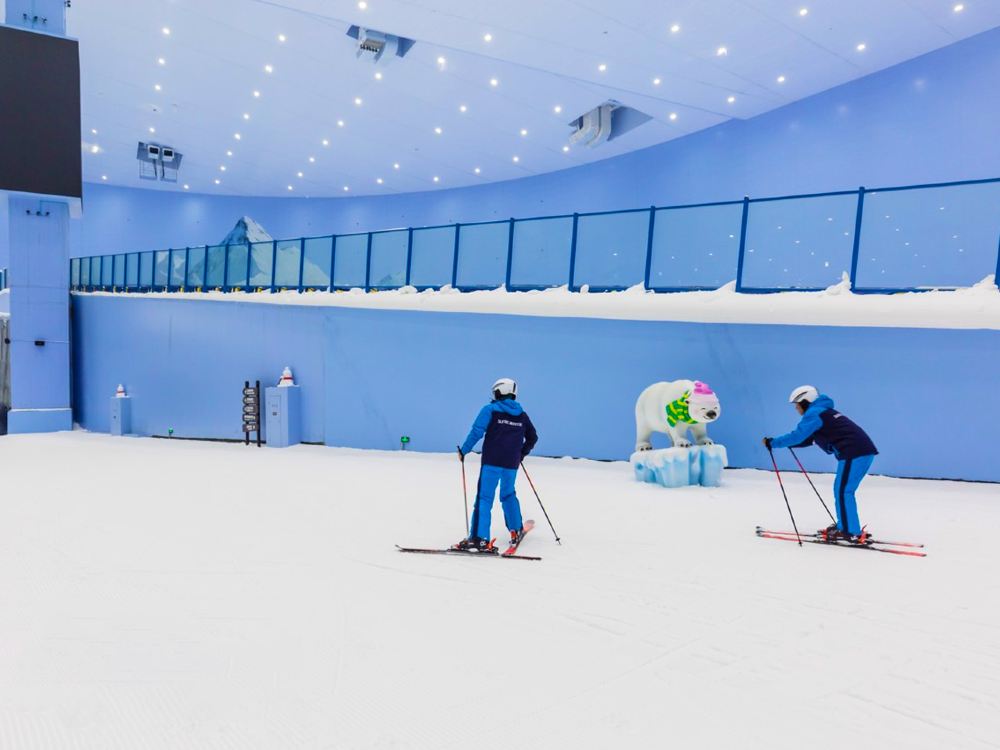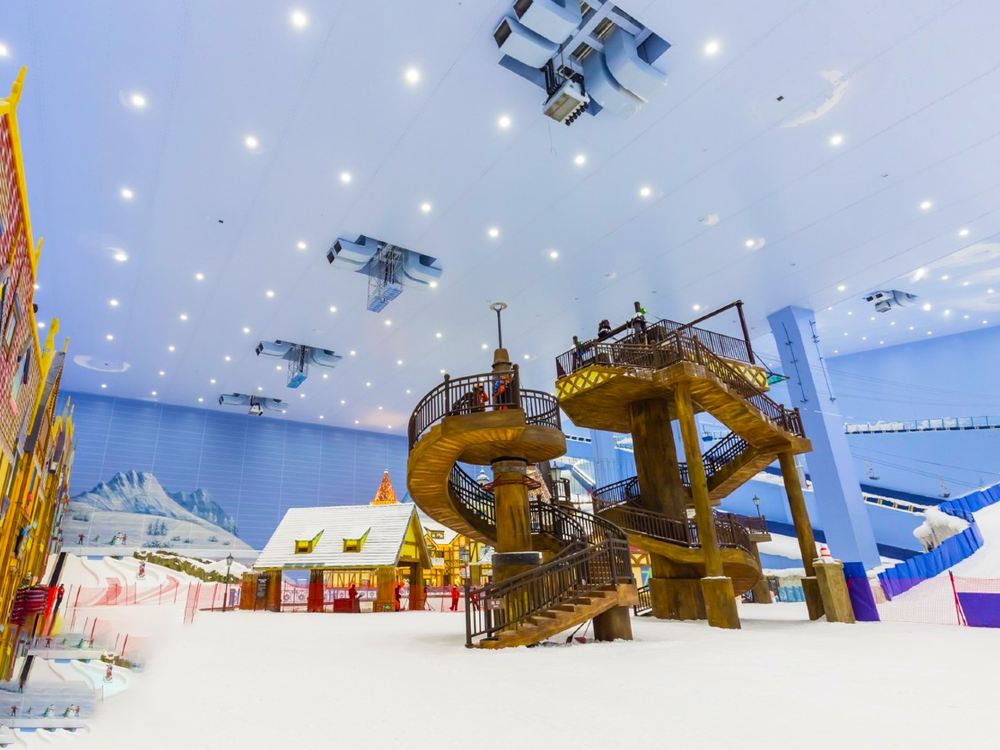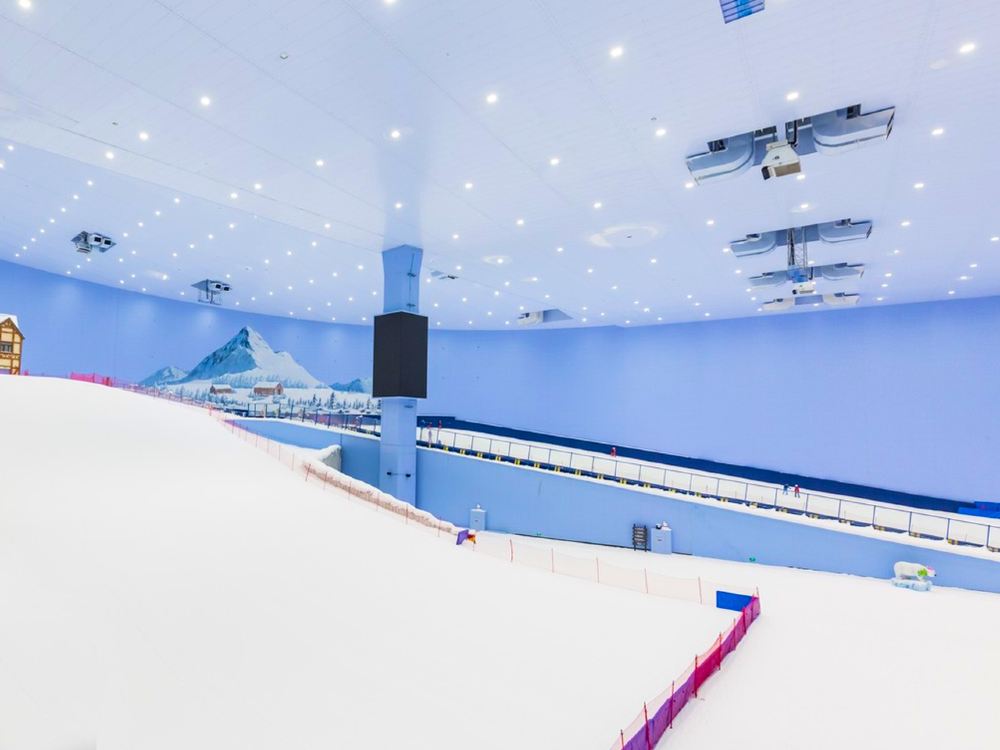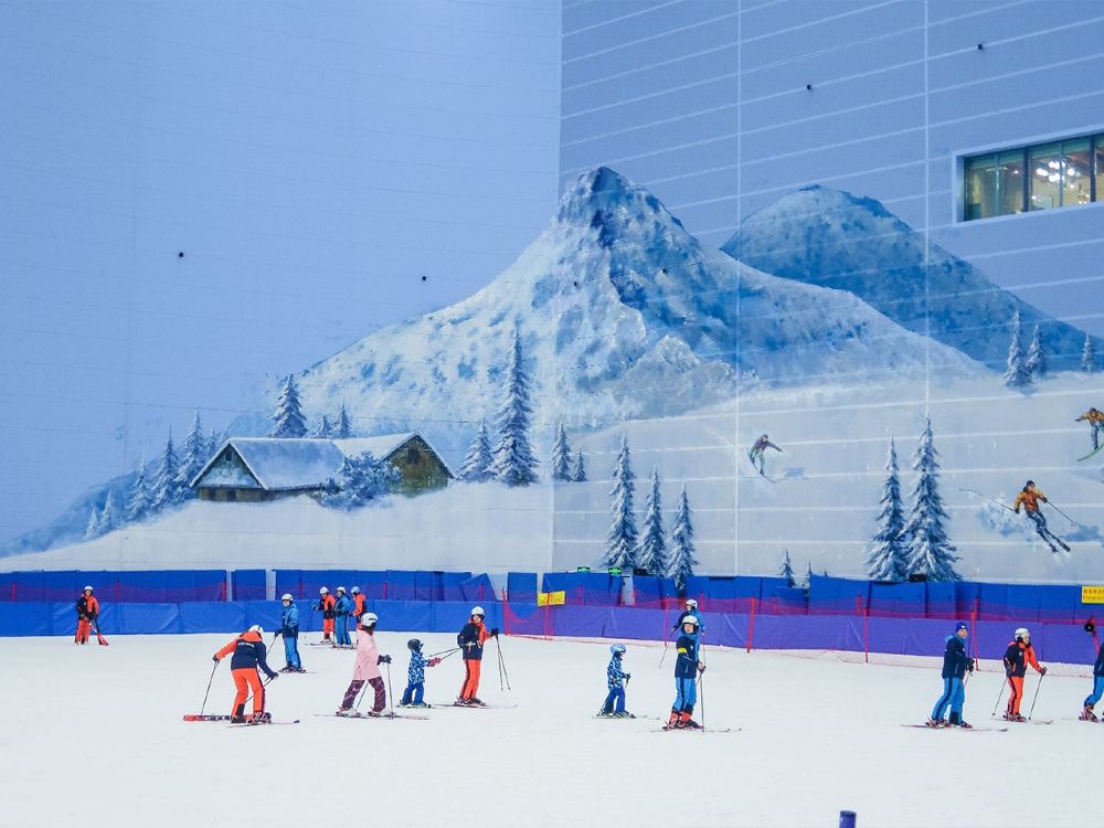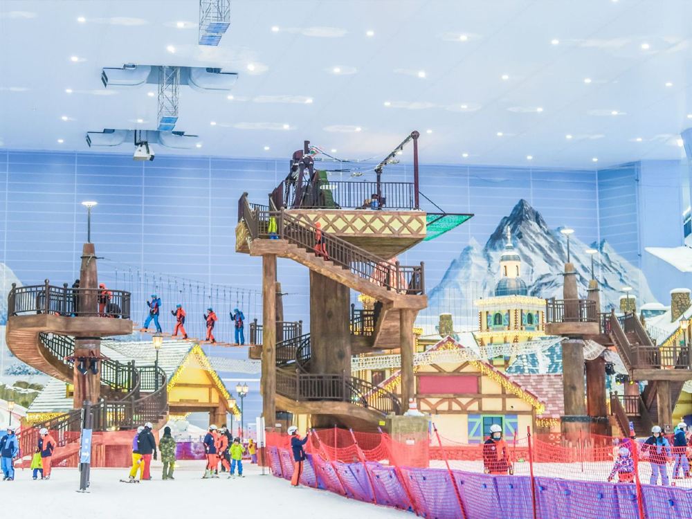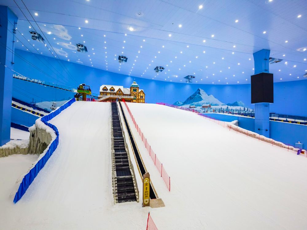 ▲ 熱雪奇跡(原雪世界):7.5 萬㎡華南超大室內滑雪場,全年恆溫 -4℃~-6℃;5 條分級雪道(最長 460m,最大落差 66m),老虎道是亞洲大型室內地形公園;1.7 萬㎡親子娛雪區,設有雪上飛碟、冰上碰碰車、飄雪景觀,裝備租賃與專業教學一應俱全。