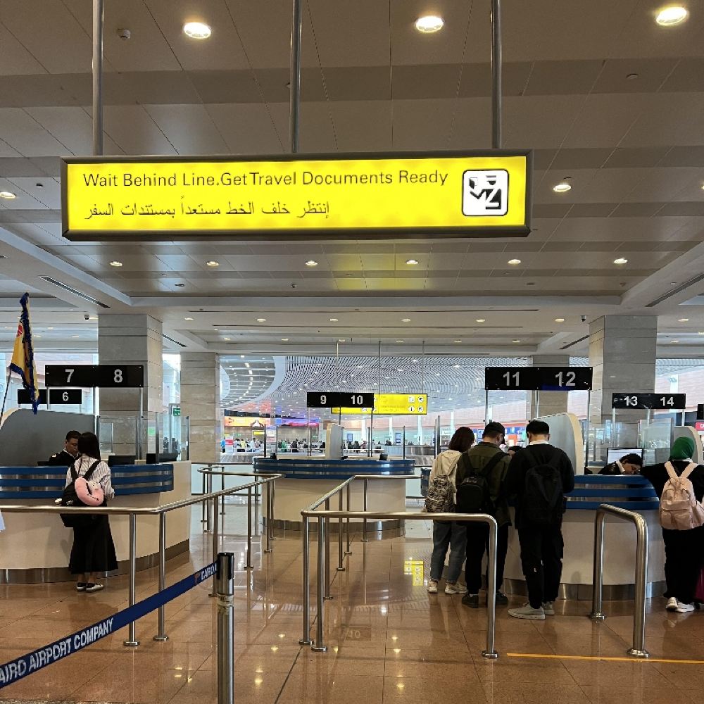 客戶服務提供埃及開羅機場的入境指引,協助規劃前往埃及的旅遊路線。