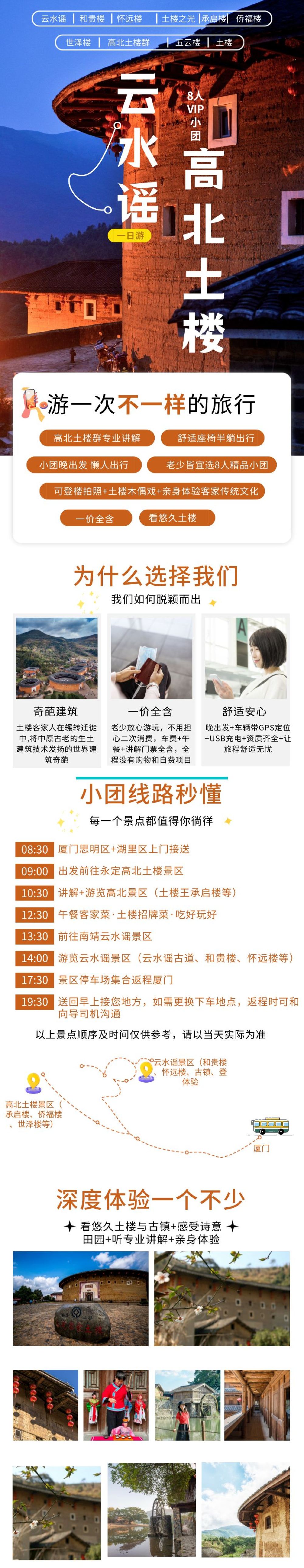 於指定地點接載08:00 廈門 思明區,海滄區,湖里區 於指定地點接載 全程8人VIP小團丨市區免費接送+含景區講解+含景區成人門票 兒童訂單不含票,滿6周歲以上補半票