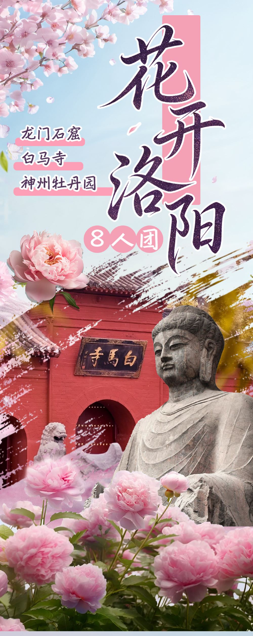 【2-8人精品小團】神州牡丹園+龍門石窟+白馬寺 精品一日遊