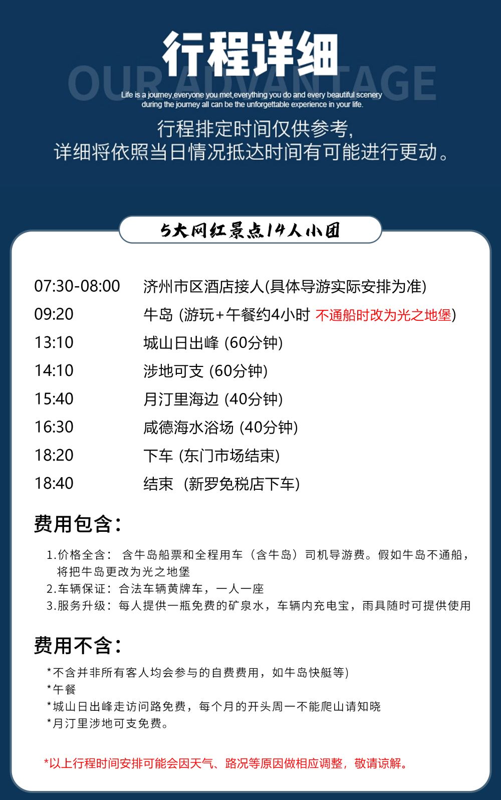 島內交通:含上島費(島內交通) 如遇景區停航更改光之地堡景點活動