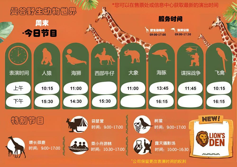 【 週末表演時間表 】僅供參考,具體時間以動物園當日公佈為準