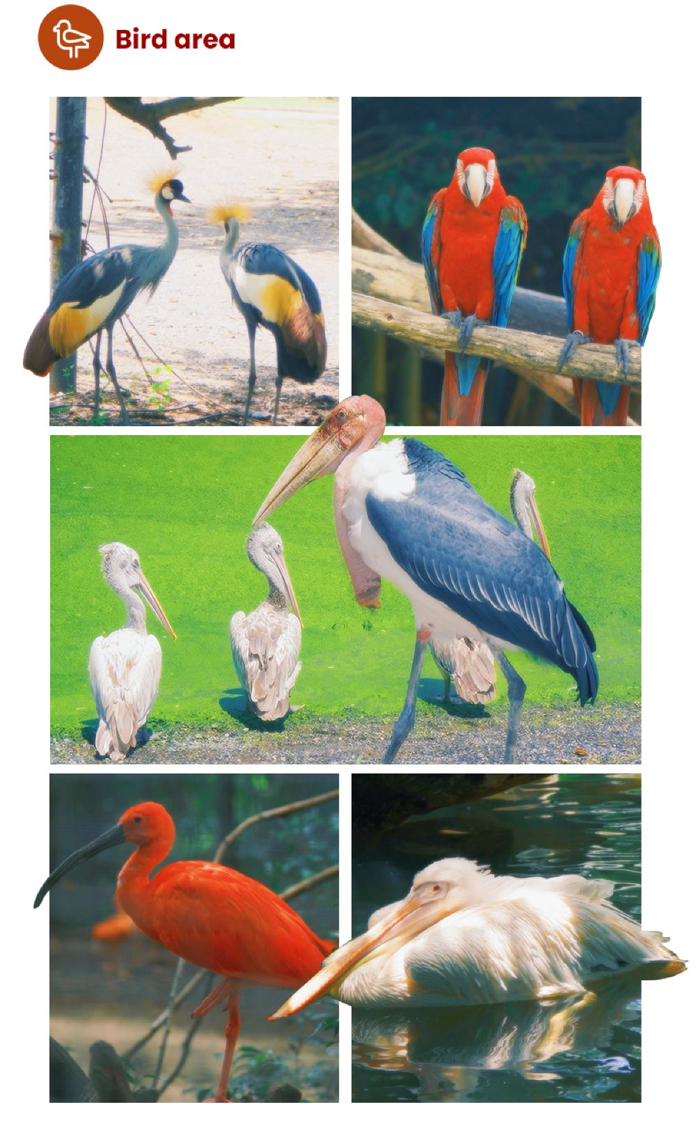 - 曼谷野生動物世界內,展出了200多種珍禽海獸,表演場每日安排有多種智能動物的有趣表演