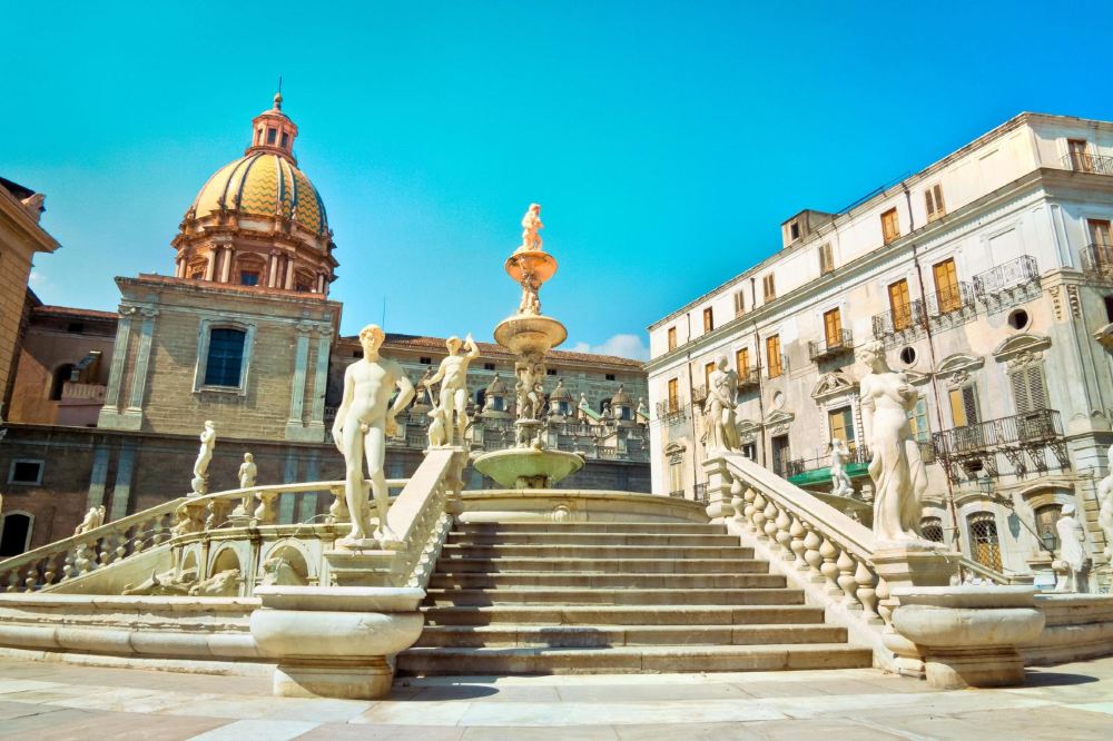▲ 普雷託利亞廣場位於意大利西西里島的巴勒莫市中心,是一處充滿歷史和藝術魅力的景點。廣場以其中央的普雷託利亞噴泉而聞名,這座噴泉由雕塑家弗朗切斯科·卡米利亞尼於16世紀設計,展示了多尊精美的大理石雕像,包括神話人物和動物,細節栩栩如生。廣場周圍環繞着幾座重要的建築,如巴勒莫市政廳和聖卡塔爾多教堂,遊客可以在此感受到濃厚的歷史氛圍。 普雷託利亞廣場被譽為「羞恥廣場」,因噴泉雕像的裸露形象而得名,這也為其增添了一份獨特的吸引力。廣場地理位置優越,步行即可到達巴勒莫大教堂和四角廣場等景點。