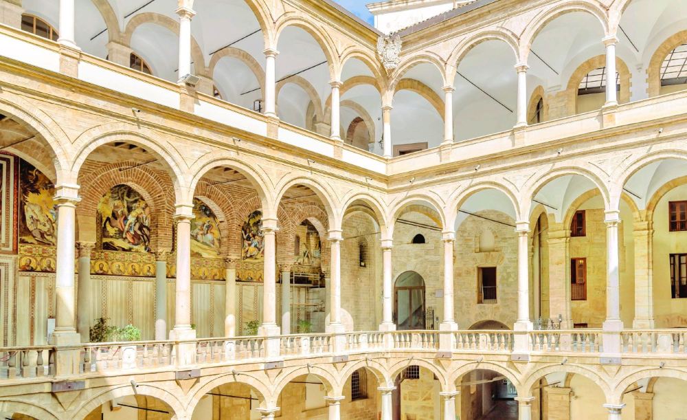 ▲ 諾曼王宮建於11世紀,諾曼人在古迦太基人和古羅馬廢墟上建造的簡樸宮殿,後來曾被歷代西西里統治者闢為官邸。 王宮二層的帕拉提那禮拜堂建於1130年,是屬於拜占庭式風格,鑲嵌金葉的彩色玻璃,整個教堂金碧輝煌的同時描繪了一幅幅聖經故事,這些元素在意大利都很少見。天花板上的木質壁龕是蜂巢雕刻的傑作。