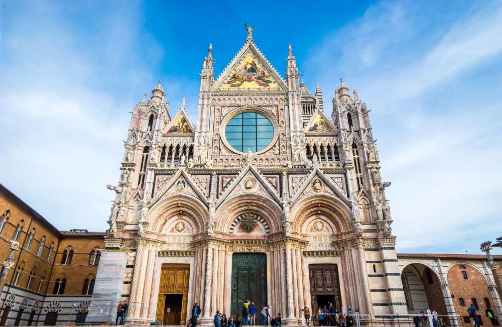 ▲ ️ **錫耶納主教座堂**:欣賞黑白大理石立面與皮科洛米尼圖書館濕壁畫,司機會提示光線時段。