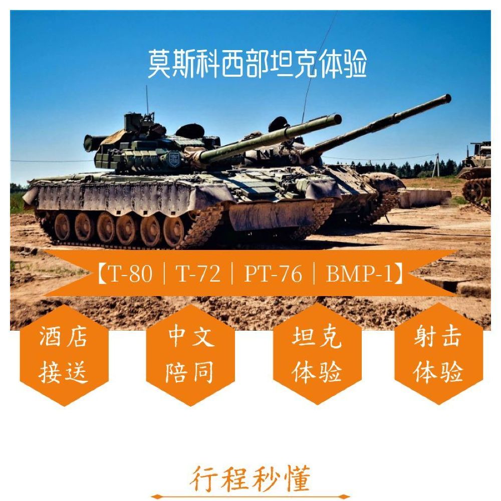 - 莫斯科軍事坦克體驗(T-80主力戰車|T-72主力戰車|PT-76水陸兩棲坦克|BMP-1步兵戰車坦克)