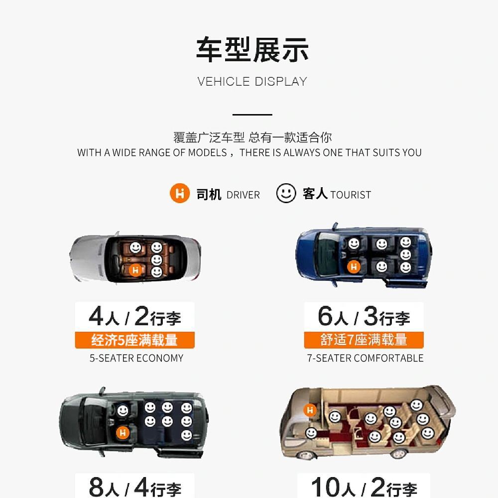 E-6人包車丨私家團 | 中型客貨車(7座) | 普通話 | 提供去程接送 | 獨立包團 | 6位旅客 | 只提供司機 | 不包括餐膳 | 回程接送