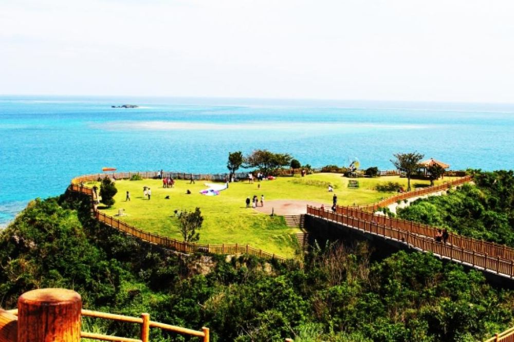 知念岬公園放眼望去就是廣闊的太平洋,遊玩公園一周大約20分鐘,高透明度的海水一覽無遺。交通