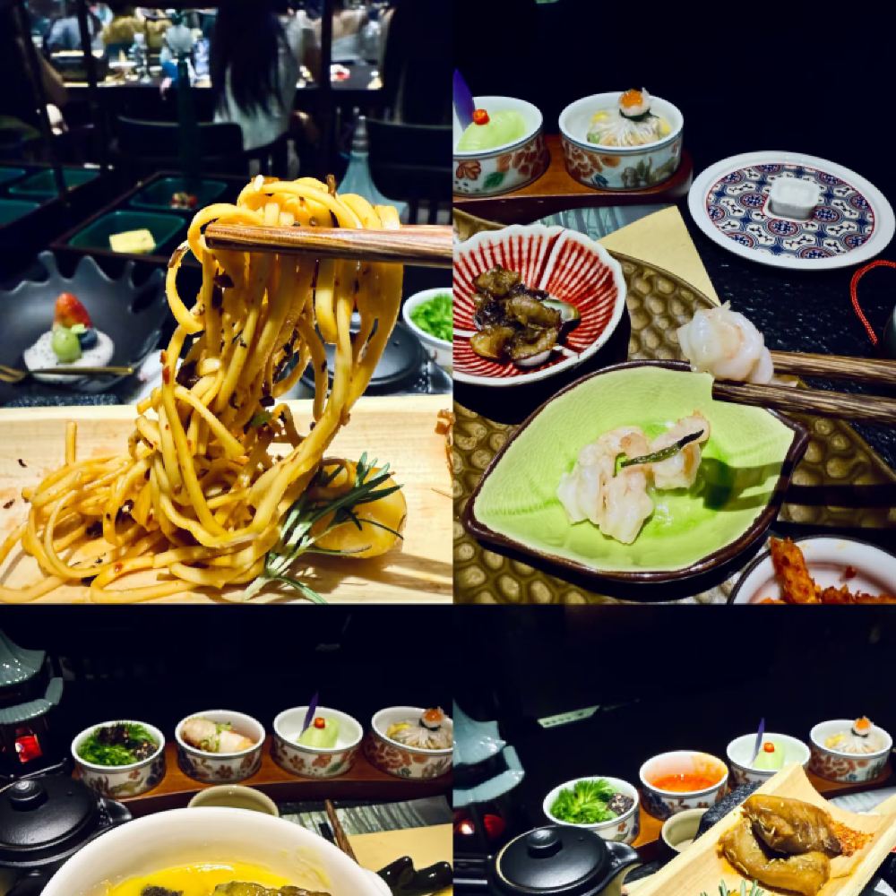 睇!《霓裳羽衣》舞姬踏鼓凌波,《蜀王巡宴》武士執戟生風,仲有川劇變臉大師穿梭席間,袖展乾坤!每道佳餚上枱都配劇情章節:金沙玉膾伴古琴泛音,椒香炙鹿隨銅鈴搖曳…