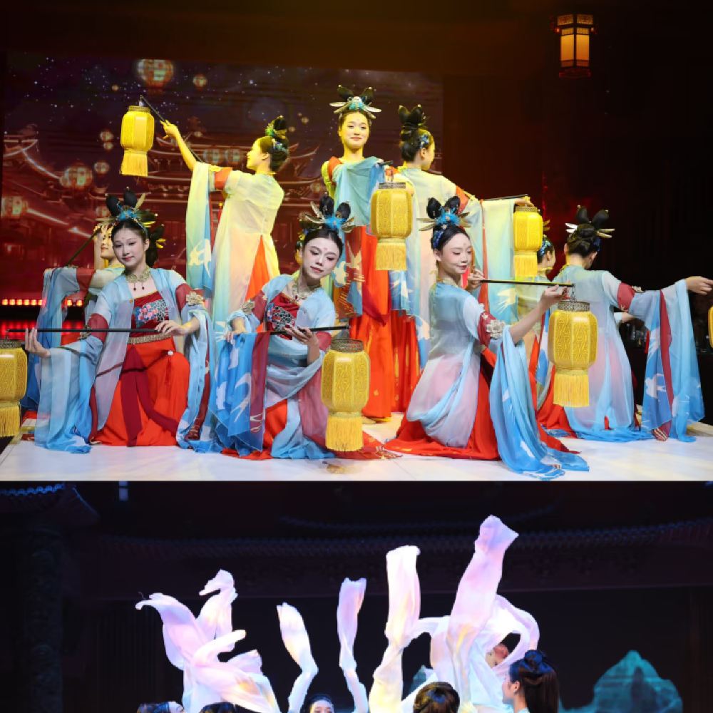 - 古韻新繹·沉浸造夢 從【蜀江宴樂】絲竹迎賓到【金沙儺戲】神秘變臉,席間侍女執燈、墨客題扇。宴畢可拍古風大片,燈籠廊下、水榭琴邊,留住穿越時光的驚艷瞬間!