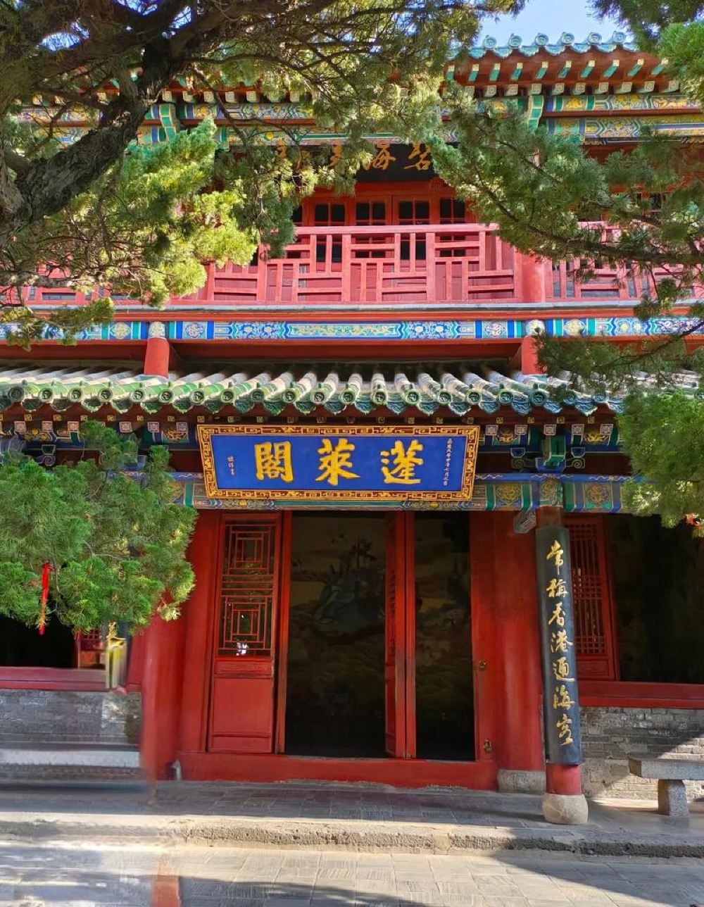 ▲ 蓬萊閣主閣,始建於北宋嘉祐六年(公元1061年),以「八仙過海」等神話傳說聞名於世。蓬萊閣主閣二樓是八仙聚會飲酒的地方,一樓內牆壁上繪有天上神仙與地下仙人同八仙匯聚的壁畫圖。