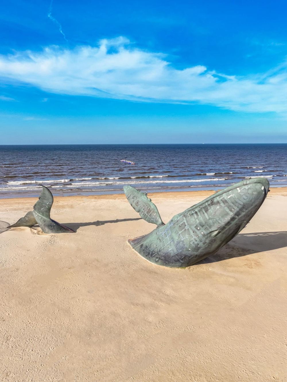 開發區金沙灘海濱公園【孤獨的鯨】,住福山區和開發區的遊客請在這裡就地自行散團。返回指定地點