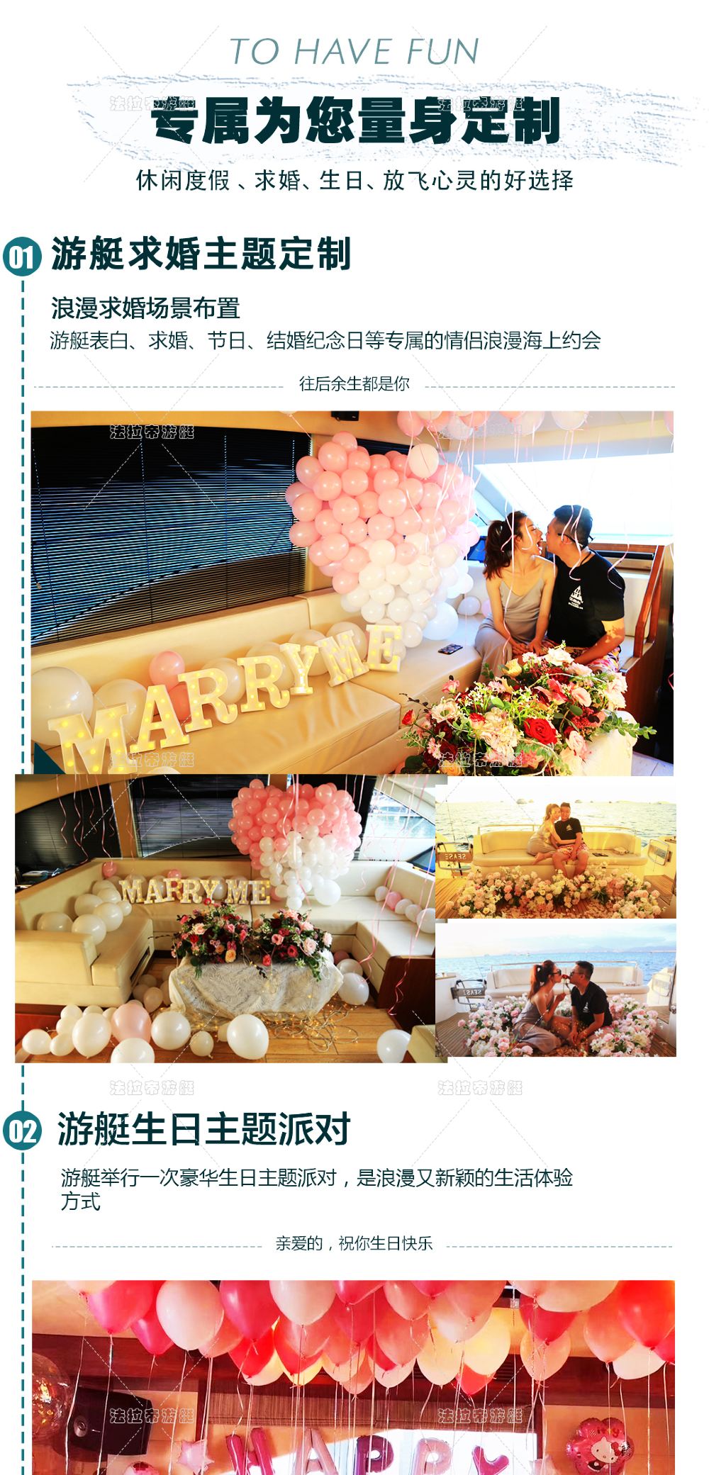 - 5 私人訂製場景:海上求婚/表白/生日派對
