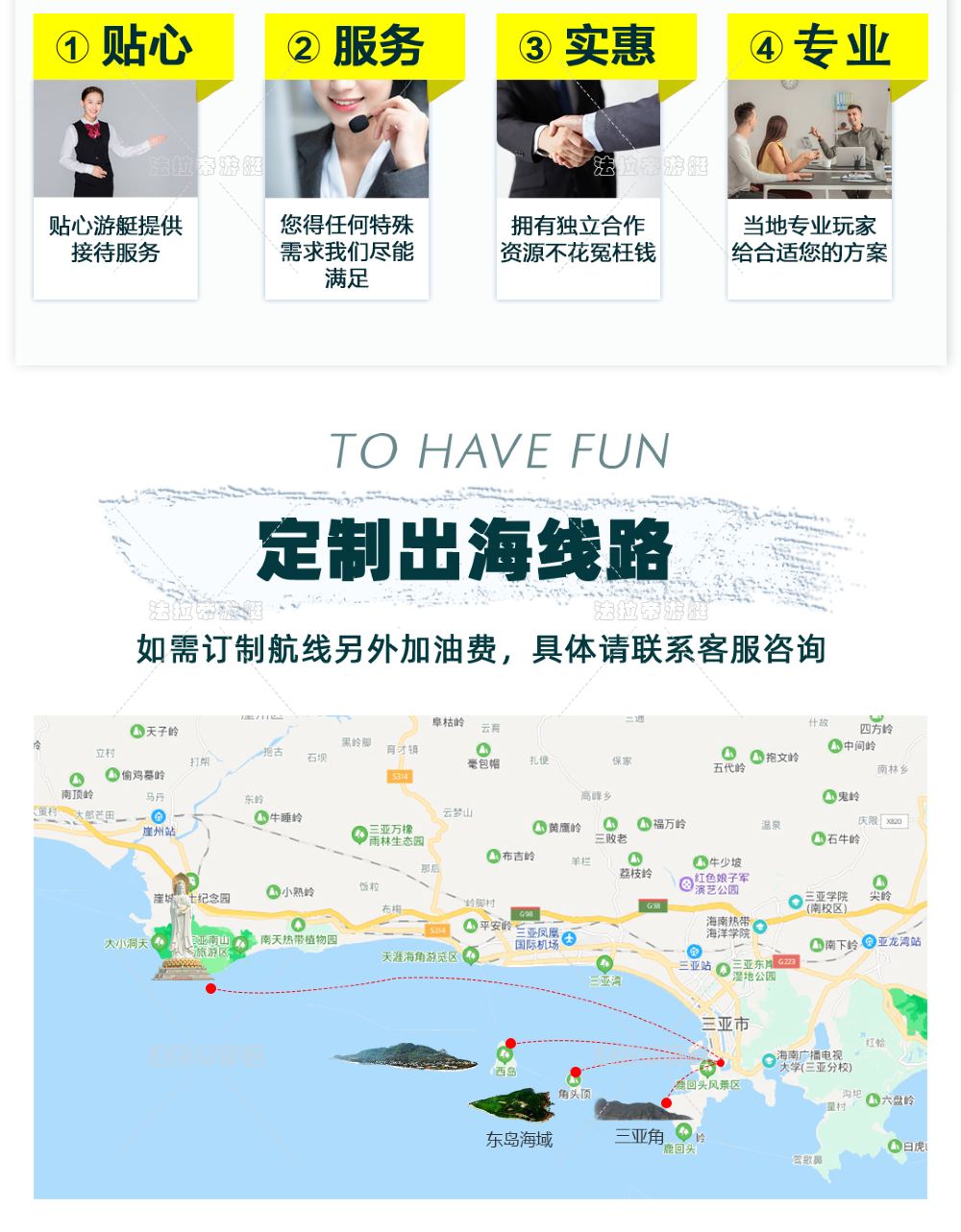 - 4 私人定制航線:東島/西島/南山/亞龍灣