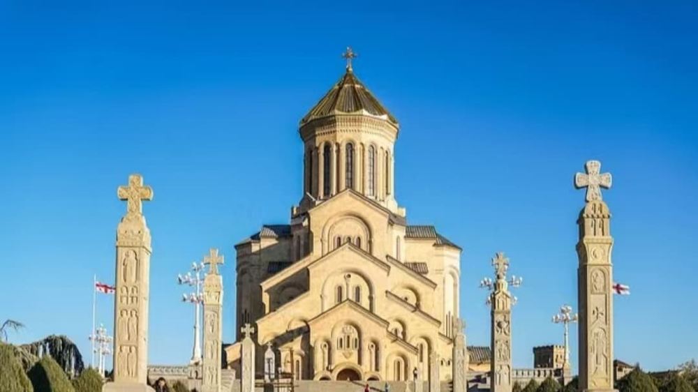 ▲ 聖三一主教座堂係高加索地區東正教教堂之一。佢喺1995年至2004年間建成,頂部有個7.5米高嘅純金穹頂。教堂採用拜占庭風格,內部裝飾華麗。